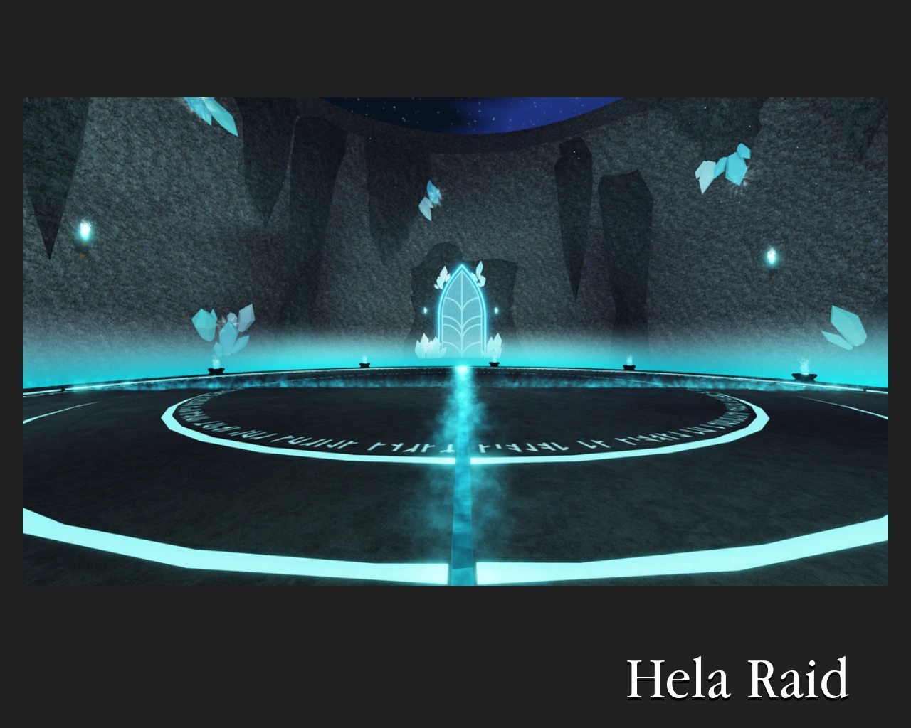 This move activates at 75% HP Hela will cover a few quarters of the arena with a blue area which will instantly execute any players caught after about ~5 seconds. She will then teleport to the center of the arena, being stunned for about ~8 seconds. Once Hela recovers, she will spawn a AoE circle underneath her which inflicts a permanent Anti-Healing onto players affected. On tier 2 and higher, players caught will be turned into a 'Zombie' that runs towards Hela. If they make it to her, they will be EXECUTED and heal Hela for 20% of HP. On tier 1-3, there will be two corners that are covered, and on tier 4 and higher there will be three corners covered. |