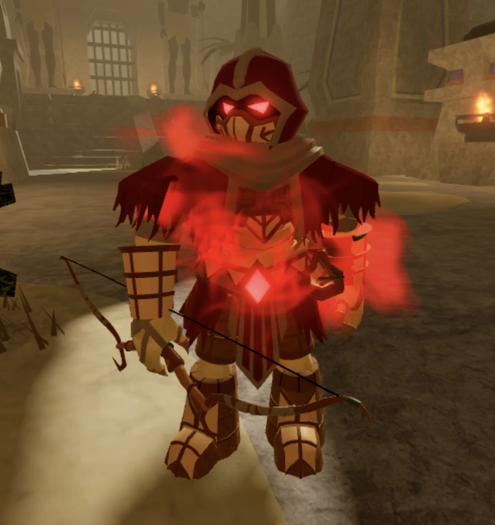 The Inferno Sandstone Archer is a ranged-type mob that only appears in Medium and Hard difficulty in Desert Temple. It is an inferno and modified version of the Sandstone Archer that has more HP and deals more damage. The Inferno Sandstone Archer will fire a barrage of eight arrows that deals small AoE at the target player, and it can also fire a single arrow that goes in a straight line. It will follow either the closest player or the player that has dealt the most damage to it unless it is taunted.