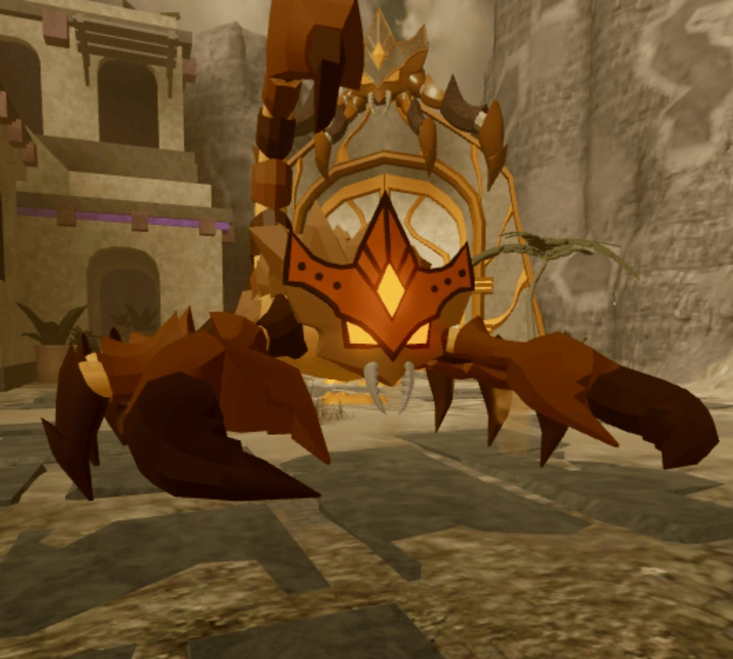 X-Sting: Occasionally, the Sand Scorpion will create a small AoE circle in front of it, damage players within and create multiple parallel beams that spawn in a X-shape depending on where the Sand Scorpion is facing.